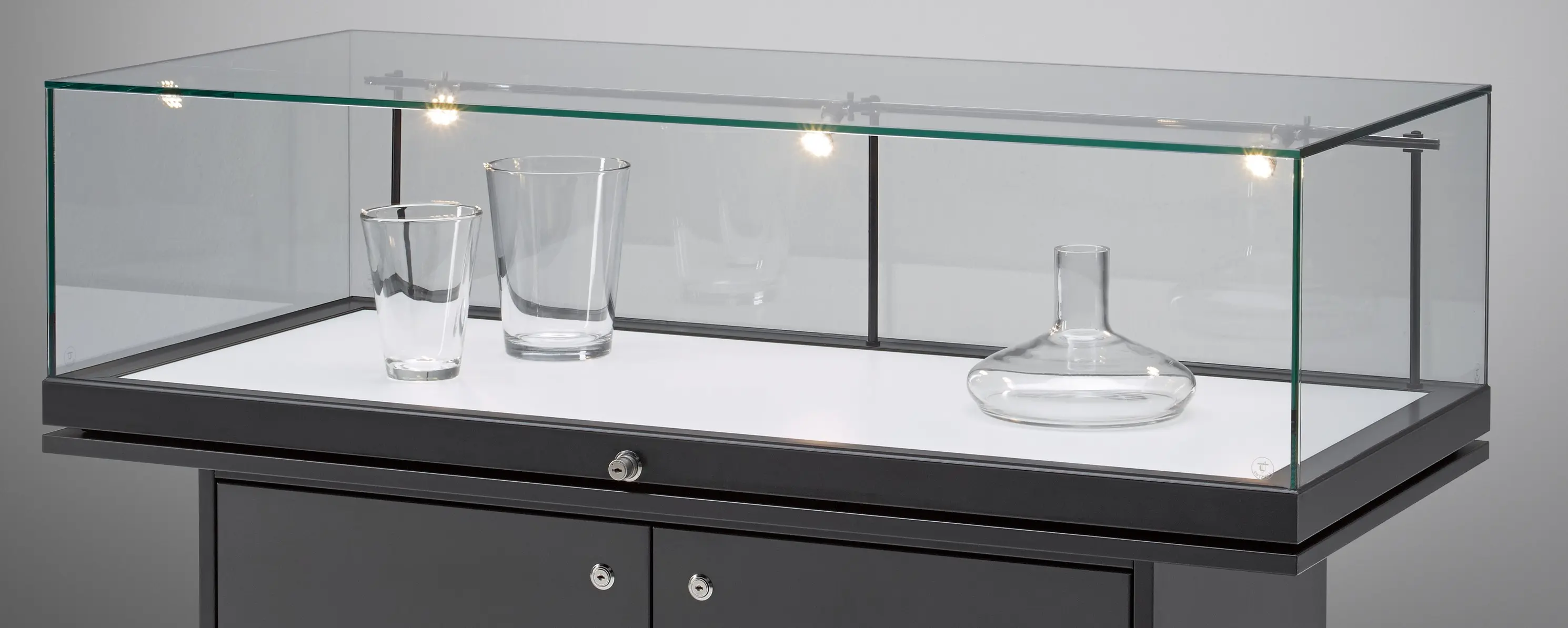 Tischvitrine aus Glas und Alu-Profil - optional mit Brandschutz